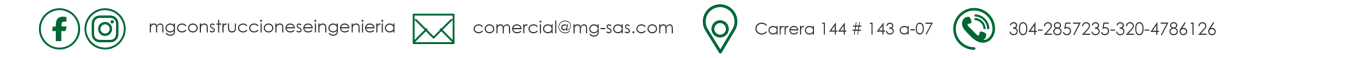 Desde el año 2015 se formaliza MG Construcciones e Ingeniería S.A.S., una empresa comprometida con la excelencia en el desarrollo de proyectos de infraestructura, tanto en el sector privado como en el público. A lo largo del tiempo, hemos consolidado una amplia experiencia y capacidad técnica para ejecutar obras de diversas magnitudes, generando confianza, reconocimiento y altos estándares de calidad entre nuestros clientes. Contamos con un equipo humano, profesional y familiar, altamente capacitado, que se destaca por su responsabilidad, compromiso y orientación al cumplimiento de objetivos. Proyectamos, gestionamos y dirigimos cada iniciativa con rigurosidad, garantizando resultados sostenibles, eficientes y alineados con las normativas vigentes.